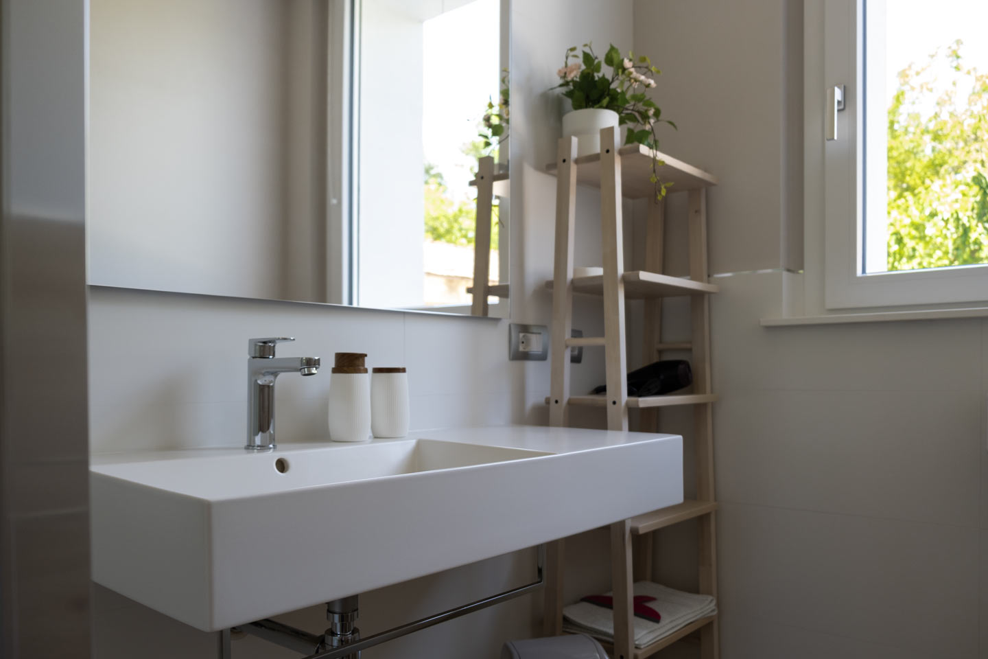 Il bagno è ampio, moderno e ben organizzato.